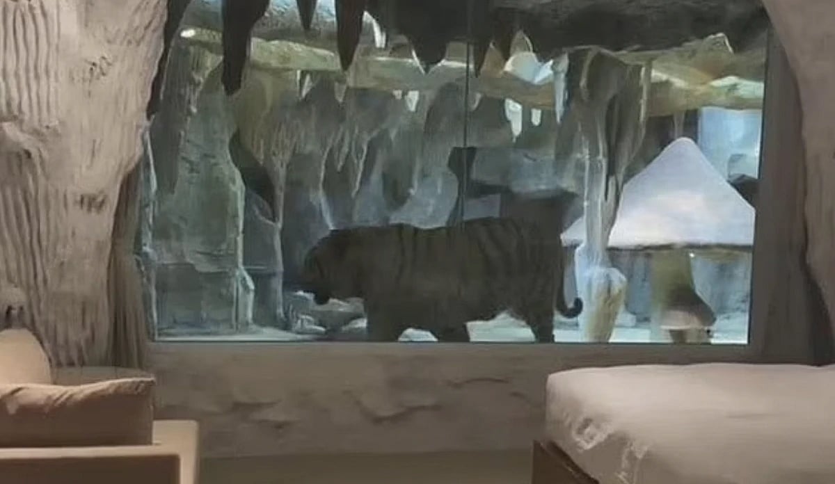 கண்ணாடி அறையில் பூட்டப்பட்ட நிலையில் புலி ஒன்று உலா வரும் காணொளி ஒன்று சமீபத்தில் இணையத்தில் வைரலானது. அந்தப் பூட்டப்பட்ட கண்ணாடி அறையானது சீனாவில் உள்ள ஒரு ஓட்டலின் அறை. புலி இருக்கும் இடத்தைச் சுற்றிலும், அந்த ஓட்டலில் வாடிக்கையாளர்கள் தங்குவதற்கான அறைகள் அமைக்கப்பட்டிருக்கின்றன. வாடிக்கையாளர்கள், புலியைப் பார்த்துக்கொண்டே தங்குவது போல புதுவிதமான ஒரு அனுதாபத்தைக் கொடுப்பதற்காக அந்தச் சீன ஓட்டல் இப்படியான ஒரு முயற்சியை எடுத்திருக்கிறது.