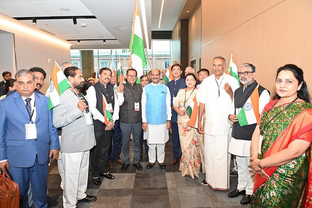 கனடா நாட்டின் ஹேலிஃபாக்ஸ் நகரில், காமன்வெல்த் கூட்டமைப்பு நாடுகளான இந்தியா, ஆஸ்திரேலியா, இங்கிலாந்து, பாகிஸ்தான் உட்பட பல்வேறு நாடுகளின் 65-வது சபாநாயகர்கள் மாநாடு நடைபெற்றது. இதில் இந்தியா சார்பாக நாடாளுமன்ற சபாநாயகர் ஓம் பிர்லா தலைமையில், அனைத்து மாநிலங்களைச் சேர்ந்த சட்டப்பேரவை சபாநாயகர்களும் கலந்துகொண்டனர். அப்போது ஓம் பிர்லா தலைமை வகிக்க, அனைத்து மாநில சபாநாயகர்களும் இந்திய தேசியக் கொடியைக் கையிலேந்தியபடி பேரணி சென்றனர். இந்த நிலையில், சபாநாயகர்கள் ஏந்தியிருந்த தேசியக் கொடியில் ``மேட் இன் சைனா" என்ற வாசகம் இடம் பெற்றிருந்தது தற்போது சர்ச்சையைக் கிளப்பியிருக்கிறது.