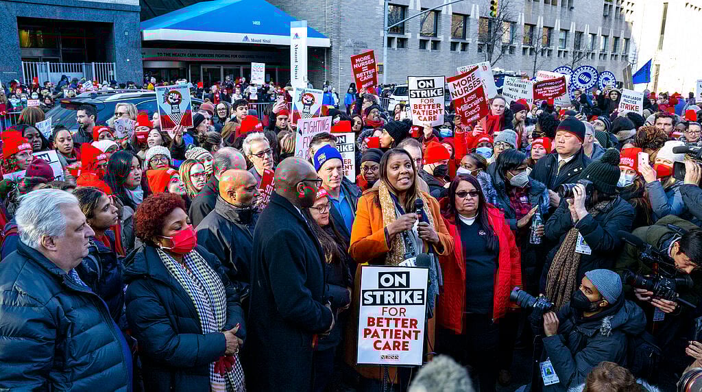 நியூயார்க் நகரில் 7000 -க்கும் மேற்பட்ட செவிலியர்கள் ஊதிய உயர்வு கோரி போராட்டத்தில் ஈடுபட்டுவருகின்றனர்.