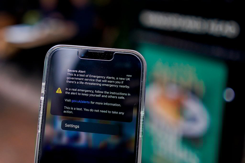 பிரிட்டன் அரசு புதிய அவசரக்கால எச்சரிக்கை சேவையின் முதல் சோதனையை நடத்தி முடித்தது. இது அந்நாட்டிலுள்ள அனைத்து கைப்பேசியிலும் மூன்று மணி அளவில் உரத்த அலாரம் ஒலிக்கும் வகையில் அமைக்கப்பட்டது. இது போன்ற செயல்பாடு கனடா, ஜப்பான், நெதர்லாந்து, அமெரிக்கா போன்ற நாடுகளில் முன்மாதிரியாக இருக்கிறது.